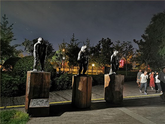 此次雕塑展作品點亮由信達電通捐助設計,信達合作伙伴羅萊迪思捐助燈具。董事長王春龍先生親臨現場考察,帶領團隊根據雕塑不同形態和形象進行燈光設計。