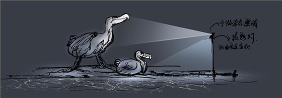 《渡渡鳥》用樹影燈映亮雕塑周圍環境,以小型投光燈重點強調雕塑局部,仿佛渡渡鳥又回到了這個世界。