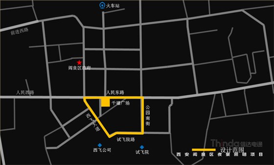 閻良區位于西安東北部,不但是一座底蘊深厚的歷史古城,還是一座資源豐富的航空名城,區內有中航工業試飛中心、第一飛機設計研究院、西飛公司、中國飛機強度研究所等大型航空企事業單位,聚集了1/3以上的航空資源。閻良已成為中國唯一、亞洲最大的六位一體的航空工業基地,被譽為“中國航空城”。本案亮化設計范圍為閻良區人民東路、西飛大道、試飛院路、公園南街等四條道路兩側的30余棟建筑及廣場、景觀帶。