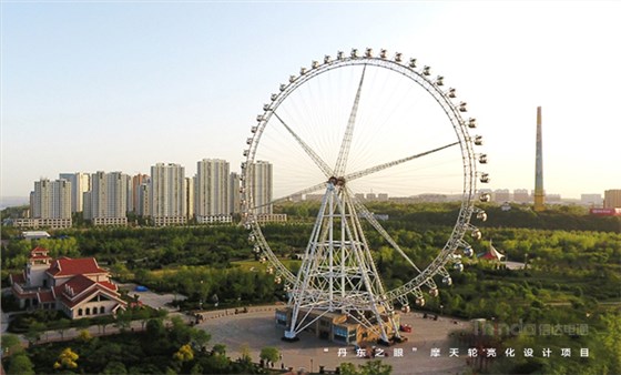 被譽為“丹東之眼”的摩天輪位于丹東新區的國門灣公園內,該公園占地17萬平方米,是丹東比較知名的公園,而且丹東非??拷谐吘尘€,所以此地區也被譽為:中朝邊境互補合作的橋頭堡和未來的區域綜合交通樞紐。在這重要的經濟和科技發展地,丹東之眼屹立于此,為這絕美的景色填上了華麗的一筆,而信達科技的照明設計也體現在國門灣公園內的標志性建筑—國門灣摩天輪。