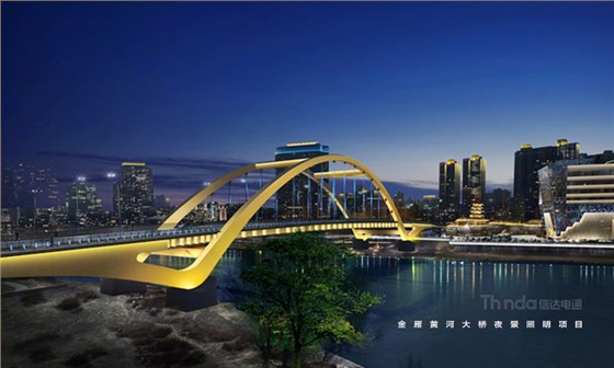 蘭州金雁黃河大橋全長六百多米,形似飄帶,信達電通在設計中選用黃色或淡藍色的簡約光色進行勾勒,使橋體的線條感在夜間更好的展示,在搭建智控時,信達電通根據(jù)設計效果選用穩(wěn)定、單一的控制。