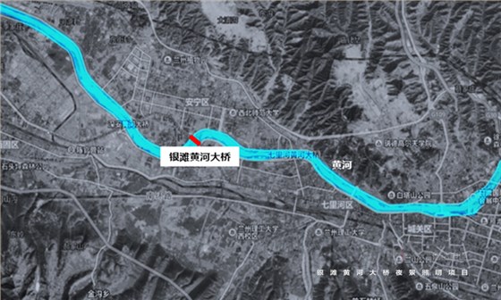 銀灘黃河大橋是蘭州市城市交通樞紐工程,北與銀灘路、北濱河路相連,南與南濱河路相接,是連接安寧區(qū)和七里河區(qū)的重要通道,北通蘭州中川國際機場,南達西北最大的貨物編組站——蘭州北站,橋長803.48m,總投資1.7億元,于1997年開工建設,2001年竣工通車,洪水流動流量為每秒6300立方米。