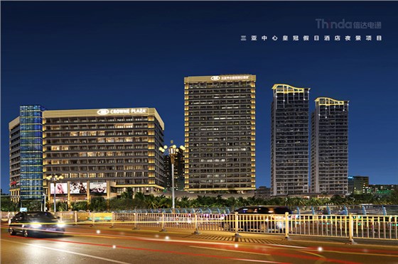 三亞中心皇冠假日酒店地處三亞市中心榆亞路,毗鄰景色秀麗的臨春河,與大東海沙灘及碧藍遼闊的中國南海近在咫尺;距離三亞鳳凰國際機場17公里,三亞火車站11公里,與鴻洲國際游艇會僅幾分鐘。周邊環繞活力四射的酒吧一條街,充滿時尚氣息的三亞國際購物中心,以及鹿回頭公園,三亞第一市場等眾多著名旅游景點。信達科技是三亞中心皇冠假日酒店外立面夜景照明的燈光設計商,此項目是三亞主城區夜景照明計劃規劃中的酒店亮化建筑,信達電通設計師團隊對此酒店外立面照明進行設計。